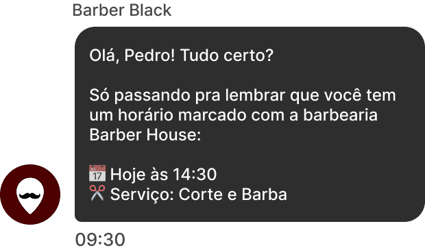 Reduza faltas enviando automaticamente lembretes do agendamento direto no WhatsApp do seu cliente.